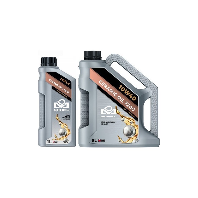 Mihel Ceramic Oil 7200 10W40 to innowacyjny olej ceramiczny, który stanowi najnowsze osiągnięcie w dziedzinie technologii środków smarnych. Ze względu na zastosowaną unikalną technologię połączenia baz olejowych i pakietów dodatków wraz z komponentami nano ceramicznymi, udało się uzyskać olej, który cechuje się znacznie lepszymi właściwościami fizykochemicznymi niż tradycyjny olej silnikowy.