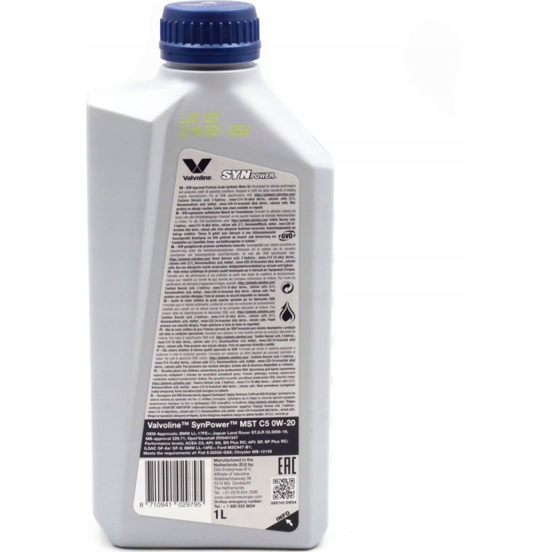 Valvoline Alyva varikliui SYNPOWER MST C5 0W20 1L, Valvoline