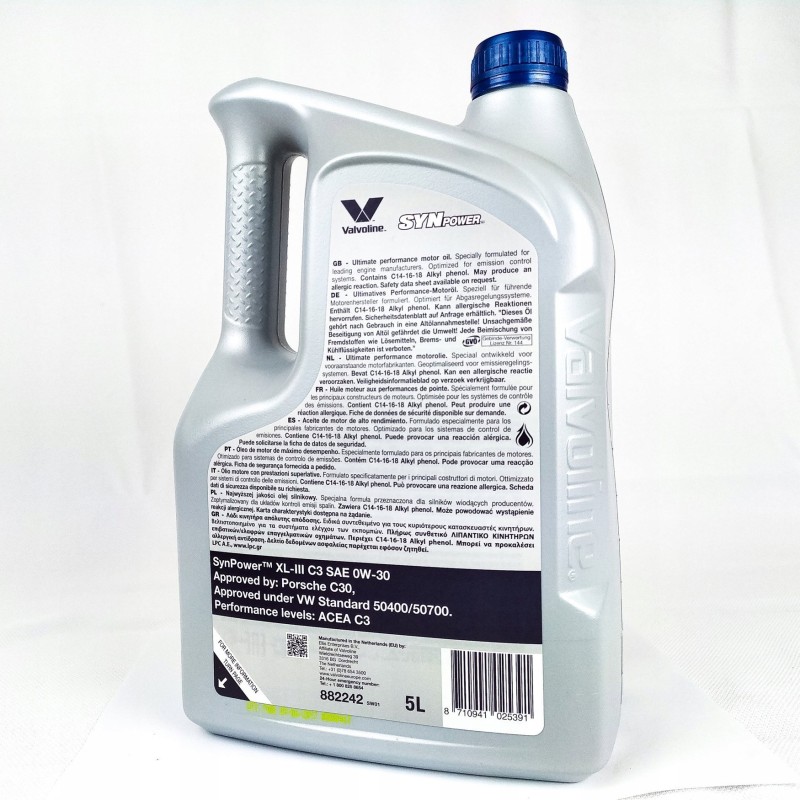 Valvoline Alyva varikliui SYNPOWER XL-III C3 0W30 5L, Valvoline