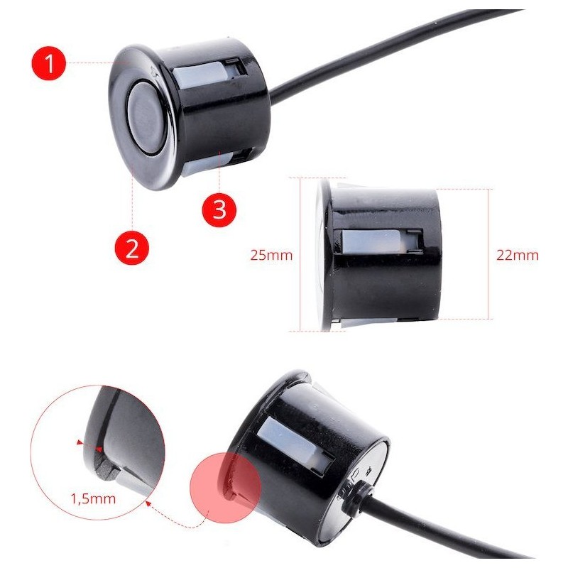 - Kołnierz wykonany z mocnego tworzywa o grubości zaledwie 1,5 mm (nie wystaje z zderzaka jak inne uniwersalne sensory)
