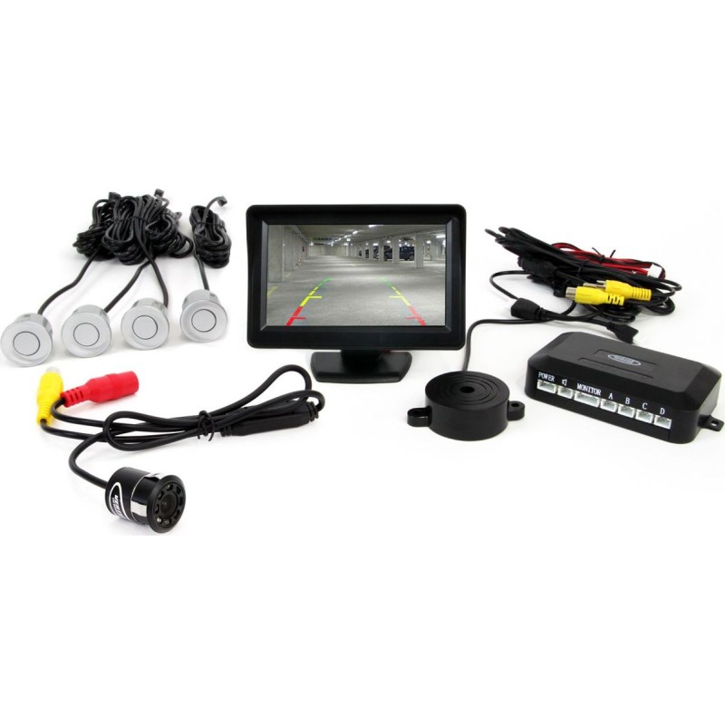 03.002 Zestaw czujników 4 sensory srebrne TFT 4,3 z kamerą night