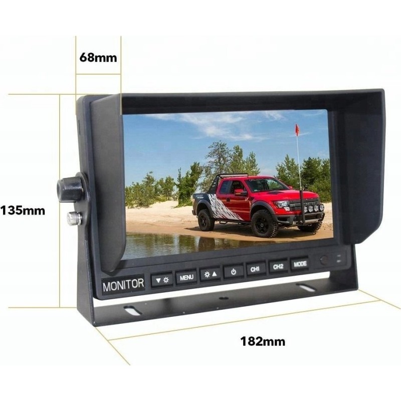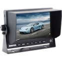 Monitor LCD 7" z serii Heavy Duty charakteryzującej się zwiększoną odpornością na drgania i wstrząsy, metalowym uchwytem zapewniającym stabilny montaż oraz przeciwsłonecznym daszkiem.