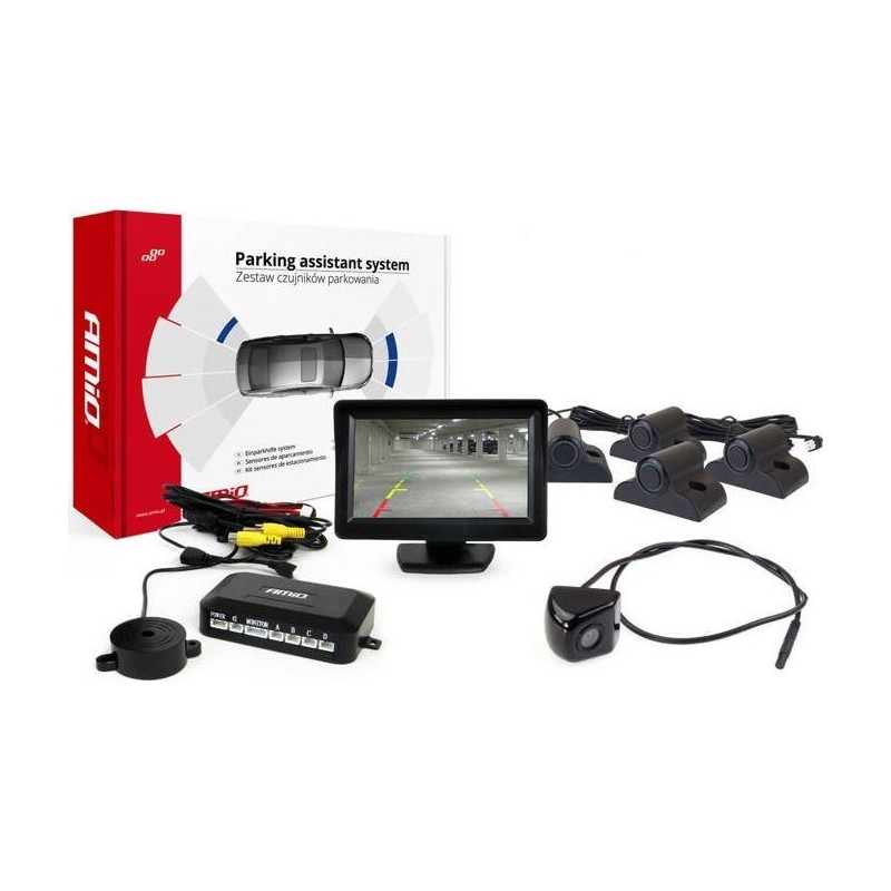 AMiO Zestaw czujników parkowania tft01 4,3" z kamerą hd-310 4 sensory czarne truck
