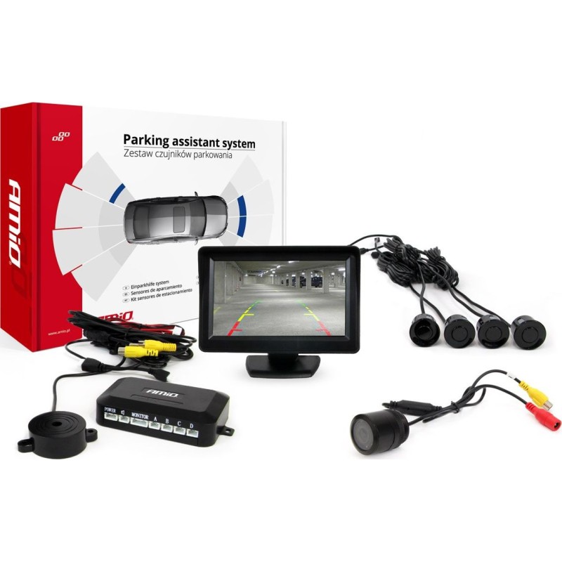 AMiO Zestaw czujników parkowania tft 4,3 z kamerą hd-301-ir 4 sensory czarne