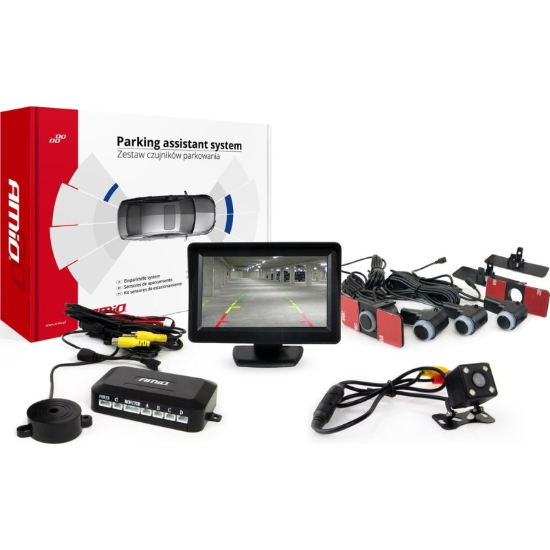 AMiO Zestaw czujników parkowania tft 4,3" z kamerą hd-315-led 4 sensory czarne wewnętrzne