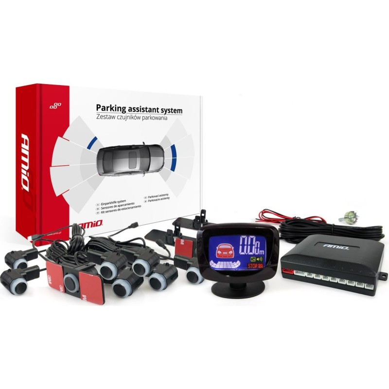 AMiO Zestaw czujników parkowania cofania led-graf 8 sensorów czarne wewnętrzne 16,5mm
