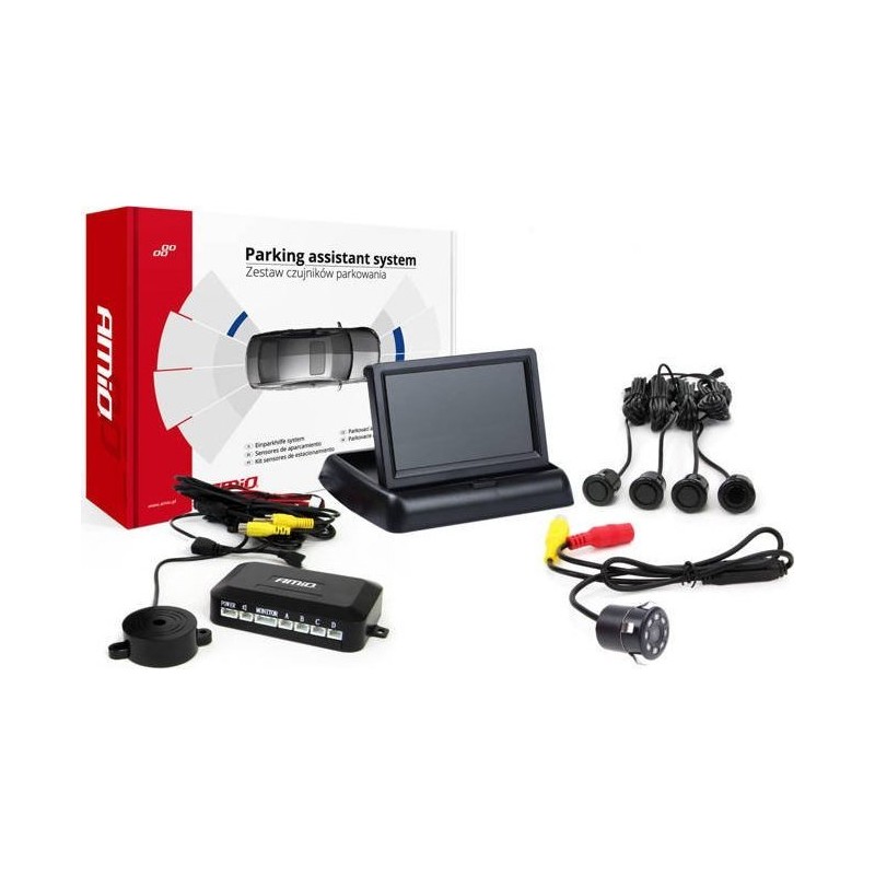 AMiO Zestaw czujników parkowania tft02 4,3" z kamerą hd-307-ir 4 sensory czarne "gold"