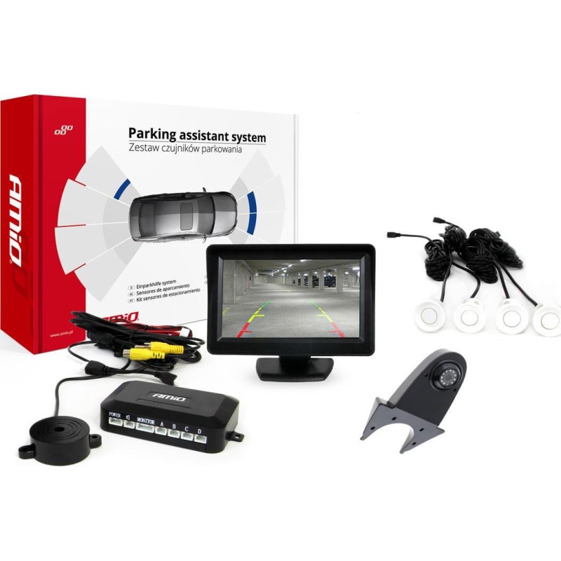 AMiO Zestaw czujników parkowania tft01 4,3" z kamerą hd-502-ir 4 sensory białe