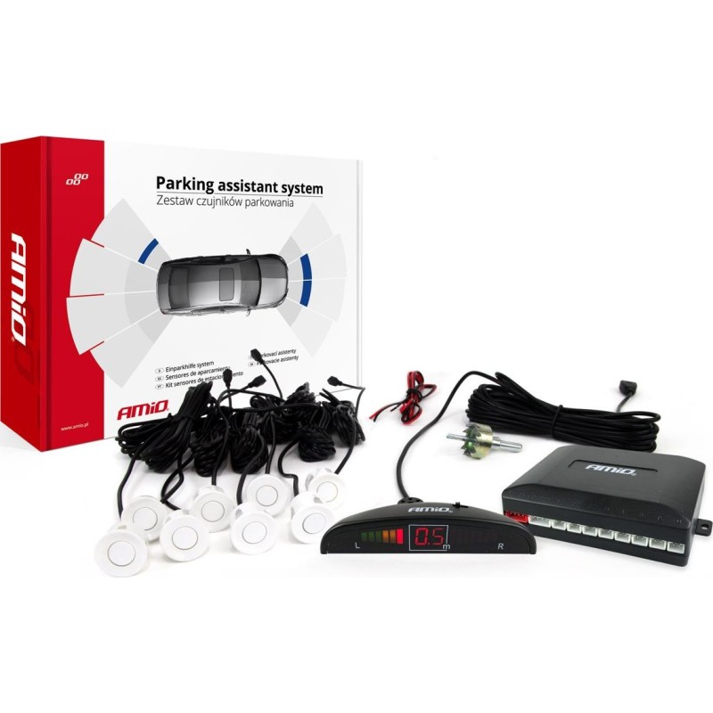 AMiO Zestaw czujników parkowania cofania led 8 sensorów białe
