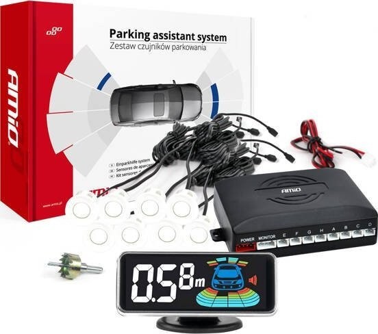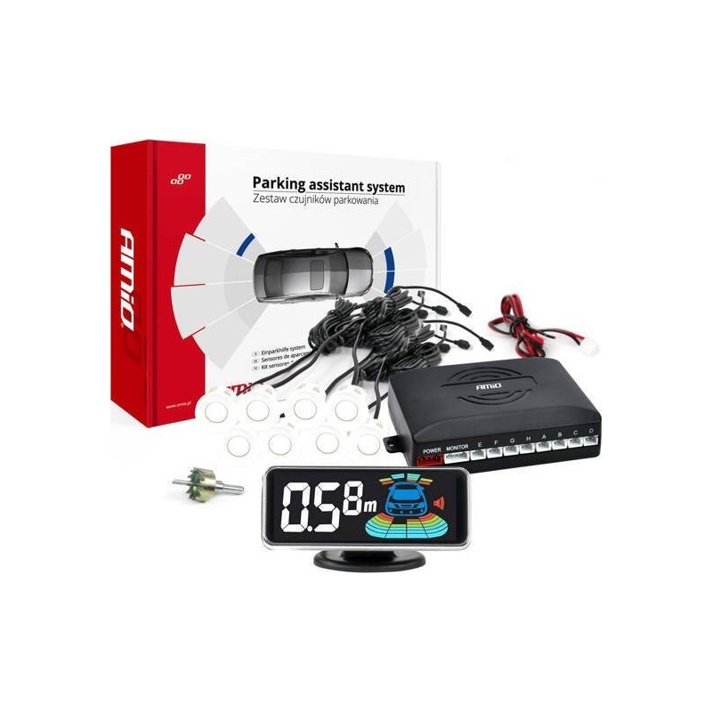 AMiO Czujniki parkowania cofania białe LED 3D przód tył AMIO-03194