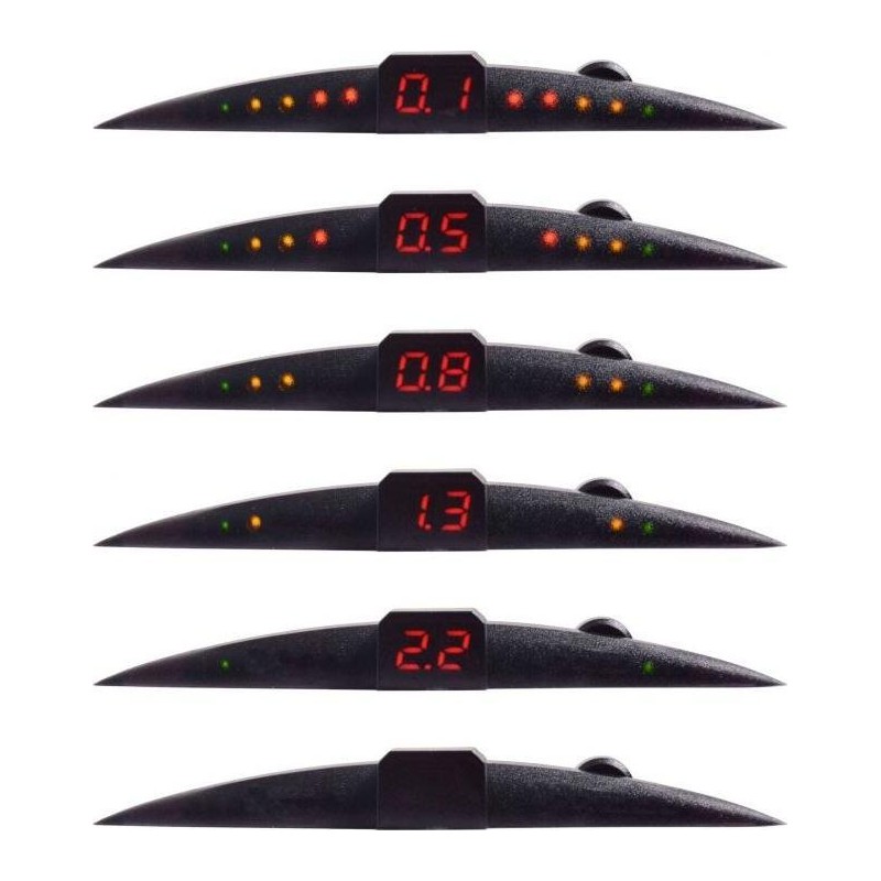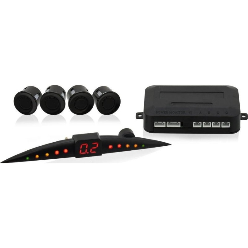 Asystent parkowania z wyświetlaczem LED i wyświetlaczem numerycznym do wygodnego wizualnego wskazywania odległości do przeszkody. Działa na zasadzie fal ultradźwiękowych przekazywanych przez czujniki w tylnym zderzaku. Aktywowany przez bieg wsteczny. Zgodnie z informacją na wyświetlaczu i sygnałem dźwiękowym, kierowca jest informowany o odległości od przeszkody, sygnał dźwiękowy można wyłączyć w górnej części wyświetlacza za pomocą włącznika. Opakowanie zawiera wyświetlacz, jednostkę sterującą, 4 czujniki do montażu w tylnym zderzaku, odpowiednie okablowanie oraz wiertło o odpowiedniej średnicy.