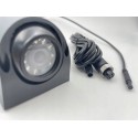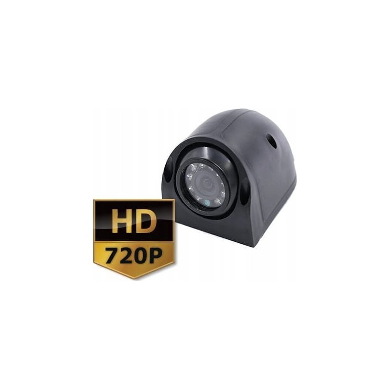 Kamera w opływowej obudowie z mocnego ABS. Może być montowana na bokach pojazdu jako kamera boczna lub z tyłu jako kamera cofania.