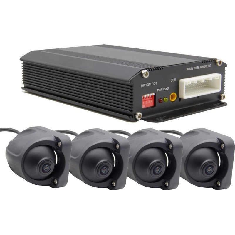 System syntetyzuje obrazy czterech kamer wyposażonych w obiektywów typu rybie oko, zamontowanych na zewnątrz pojazdu w jednolity obraz panoramiczny przez