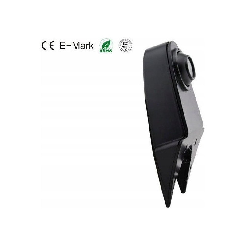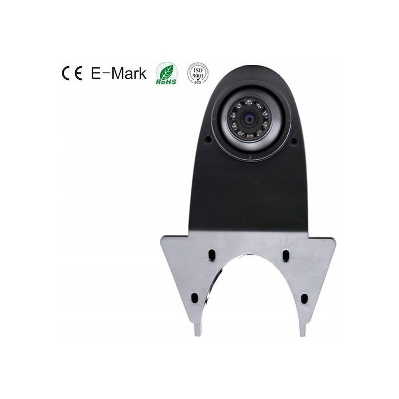 18 wysoko wydajnych diod IR umożliwia dobre widzenie kamery nawet w całkowitych ciemnościach. Wysoką jakość obrazu, doskonałe kolory i odwzorowanie szczegółów zapewnia megapikselowy przetwornik SONY. Rozdzielczość kamery jest ponad dwa razy większa niż standardowych kamer cofania. Kamera posiada uchwyt z możliwością regulacji w jednej płaszczyźnie oraz regulowany daszek zabezpieczający obiektyw przed opadami atmosferycznymi i zapobiegający oślepianiu kamery silnymi promieniami słonecznymi.