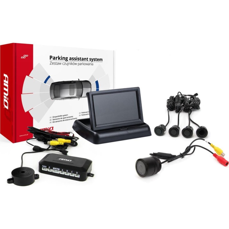 AMiO Zestaw czujników parkowania tft02 4,3" z kamerą hd-301-ir 4 sensory czarne "gold"