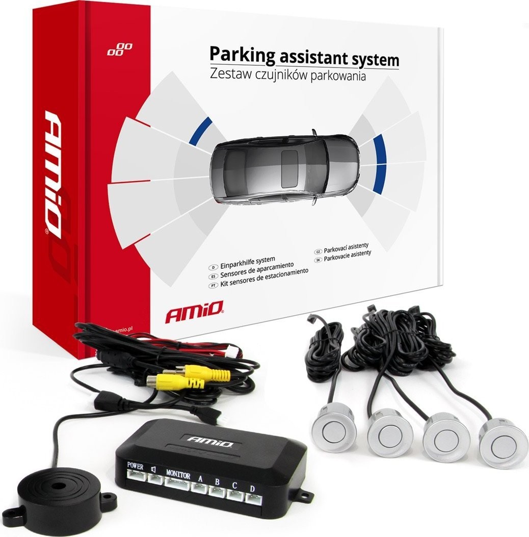AMiO Zestaw czujników parkowania pod kamerę i wyświetlacz lcd srebrne 22mm amio-02990