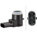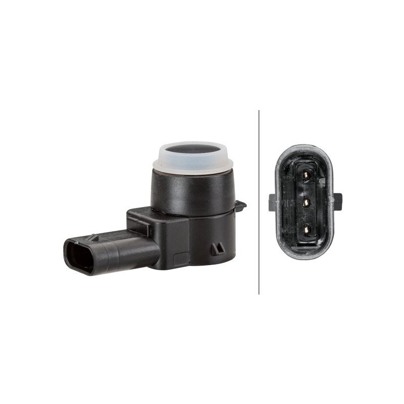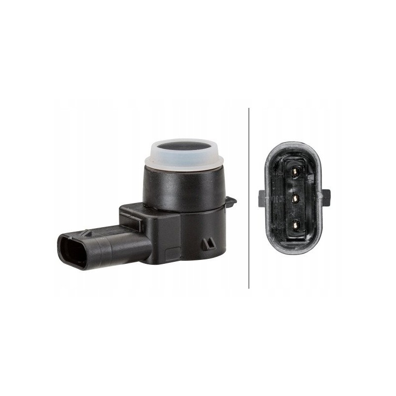 Czujnik odległości Hella 6PX 358 141-091 jest wciśnięty, ustawiony pod kątem, czarny i lakierowany. Wyposażony jest w pierścień mocujący oraz 3 bieguny, co zapewnia jego funkcjonalność w systemie parkowania.