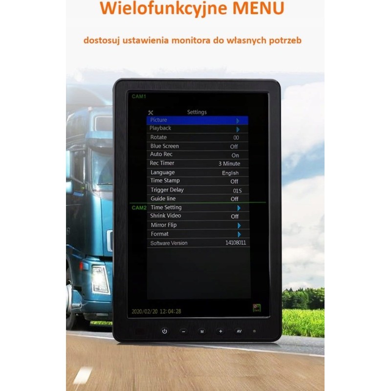 DVS Pionowy monitor 10" AHD z nagrywaniem DVR kamera boczna kamera martwego pola