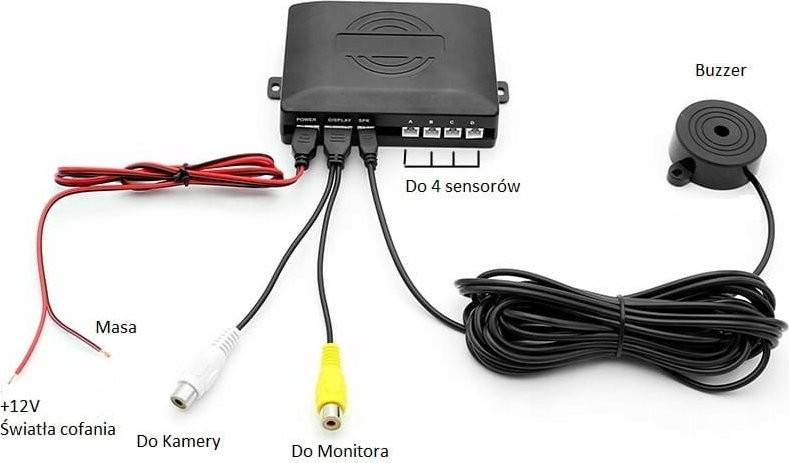 Czujnik posiada wbudowany mikser wideo dzięki czemu może wyświetlać obraz z podłączonej kamery cofania i wygenerowany cyfrowo wskaźnik odległości.