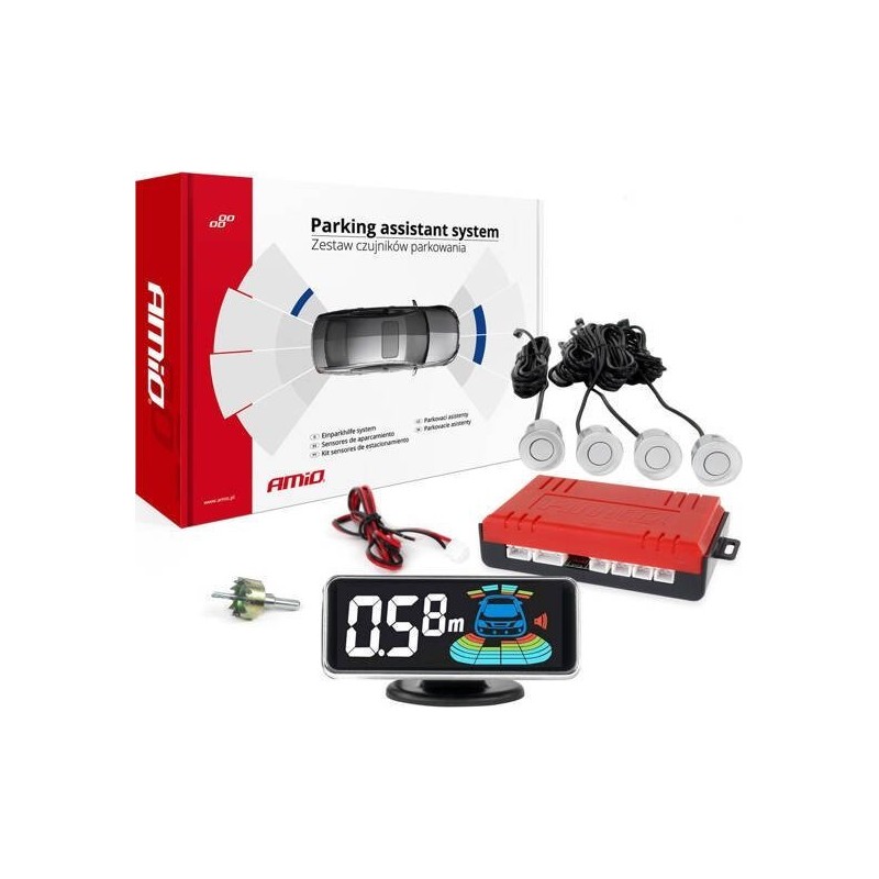 AMiO Czujniki parkowania cofania srebrne LED 3D AMIO-03187