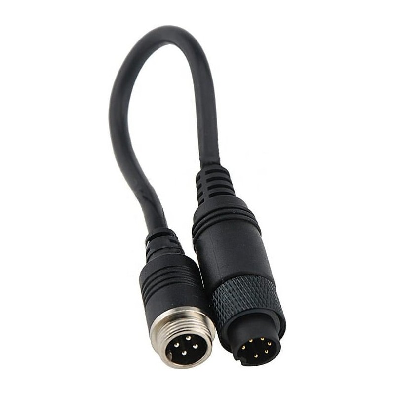 Solidnie wykonana redukcja ze skręcanymi złączami, umożliwiająca podłączenie 4-PINowej kamery cofania do monitora systemu WAECO/DOMETIC ze złączem 6-PIN