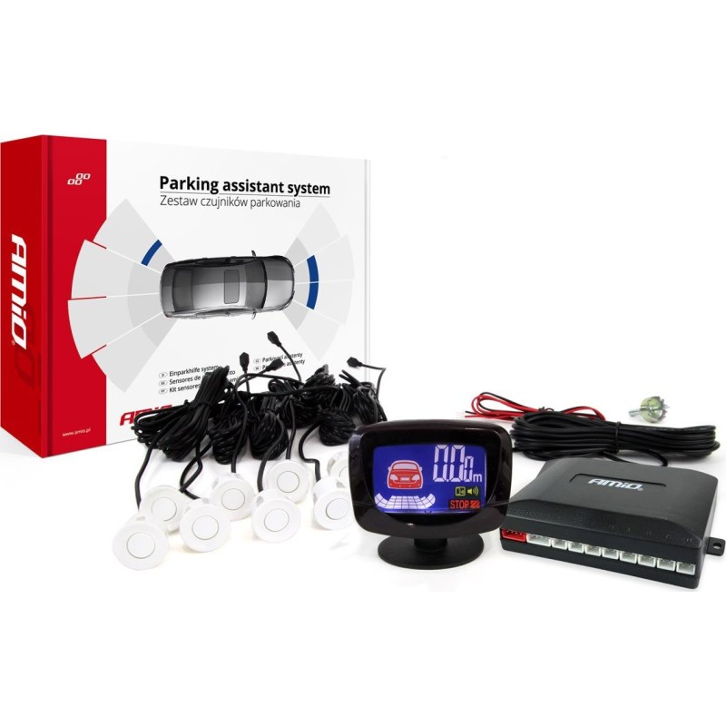 AMiO Zestaw czujników parkowania cofania led-graf 8 sensorów białe