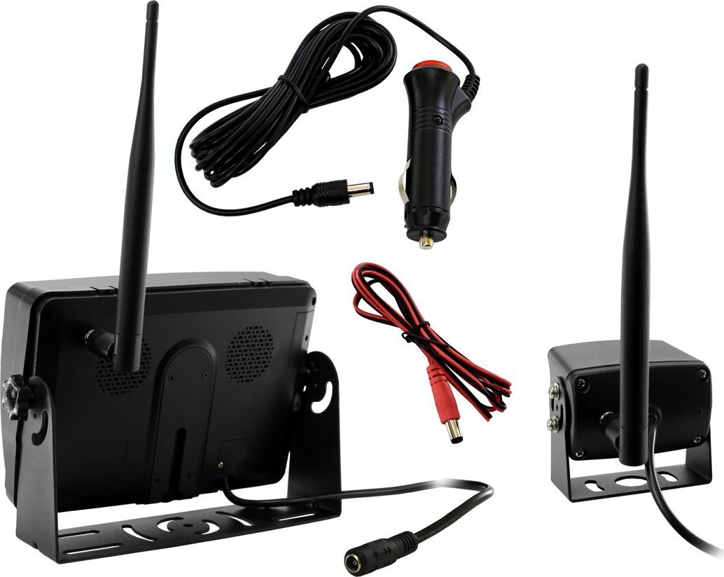w zestawie: - monitor, - 1 kamera, - 2 anteny, - okablowanie zasilające do kamery, - zasilacz do gniazda zapalniczki, - podstawka, - instrukcja obsługi, - gwarancja 30 mies., - paragon lub F.VAT