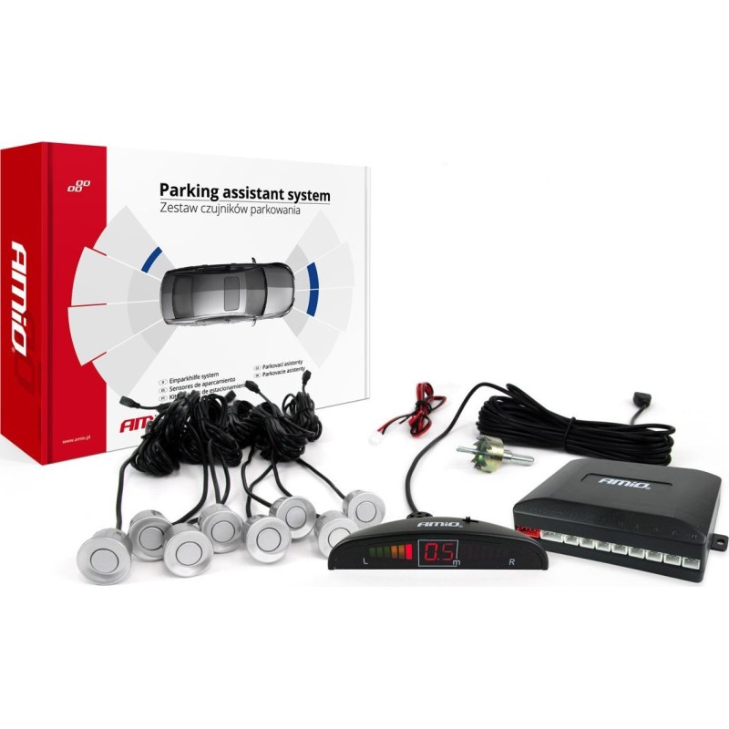 AMiO Zestaw czujników parkowania cofania led 8 sensorów srebrne
