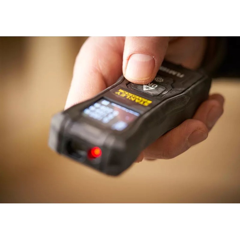 Dalmierz laserowy FLM165 Stanley FatMax FMHT77165-0 to narzędzie pomiarowe, służące do wykonywania pomiarów prostych, powierzchni i objętości. FatMax FMHT77165-0 posiada zakres pomiarowy 50m z dokładnością około 1.5mm, a sama obsługa bardzo komfortowa, dzięki temu że został zastosowany czarny ekran LCD z wyraźnymi białymi znakami zapewniający doskonałą widoczność w jaśniejszym otoczeniu.