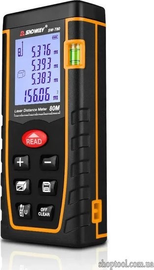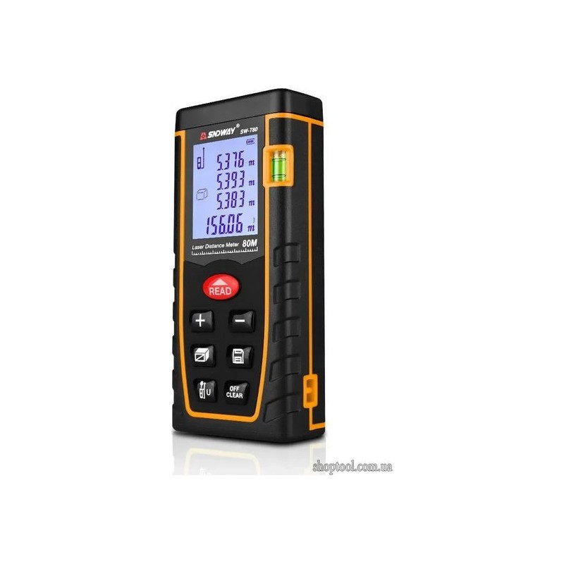 SpecyfikacjeMaksymalna odległość pomiaru: 80m. Dokładność pomiaru +/- 2mm. Klasa lasera: II, 630-670nm, <1mW. Zasilanie: 2x 1.5V AAA (w zestawie). Pamięć danych: 30 jednostek. Temperatura pracy: 0°C ~ +40°C. Temperatura przechowywania: -20°C ~ +60°C. Automatyczne wyłączanie lasera: 20s. Automatyczne wyłączanie urządzenia: 150s. Wymiary: 112x50x25mm. Waga: 88g.