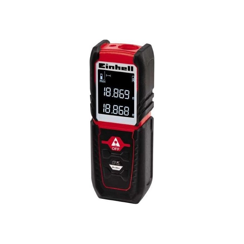 TC-LD 25 DALMIERZ LASEROWY marki Einhell to małe i poręczne narzędzie do wykonywania precyzyjnych pomiarów odległości do 25 metrów. Ten miernik pozwala mierzyć odległości a także obliczać obszary i objętości. Pomiaru może być dokonywany od przedniej lub tylnej krawędzi. Funkcja min / max umożliwia ciągłe pomiary. Narzędzie wyłącza się automatycznie po trzech minutach bez użycia.