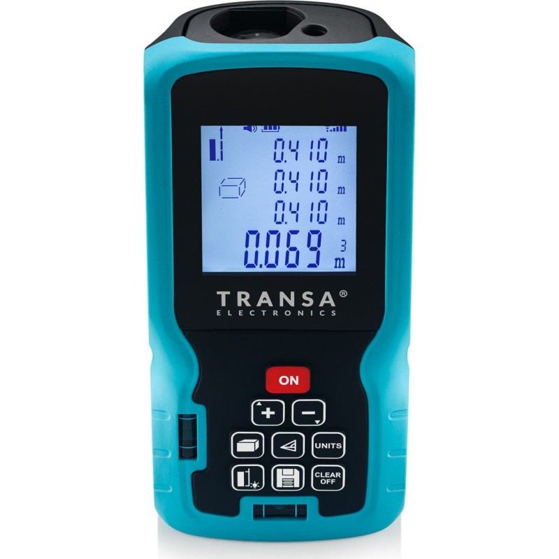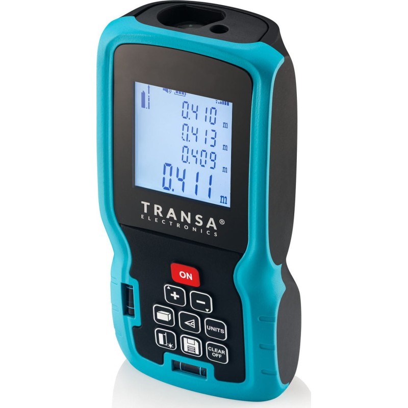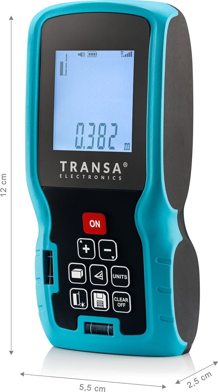 Dalmierz laserowy MeasureMe100 Transa Electronics® jest precyzyjnym przyrządem przeznaczonym do bardzo dokładnych pomiarów odległości, powierzchni i objętości. Może również mierzyć wysokość za pomocą twierdzenia Pitagorasa.