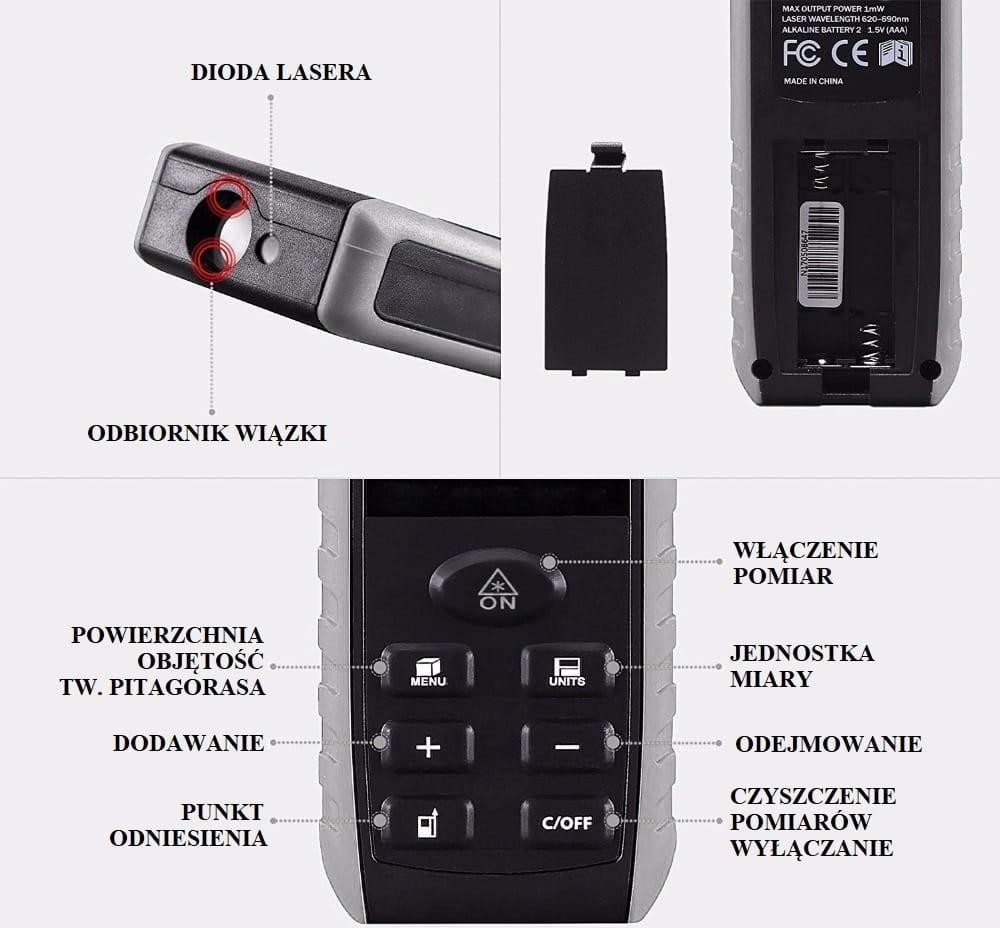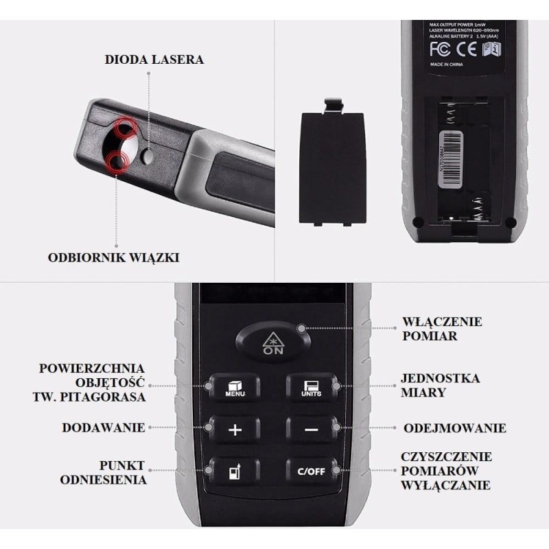 Wysoka dokładnośćCyfrowy miernik odległości zapewnia Maksymalny zasięg to 50 m Dostępne są pomiary w jednostkach |