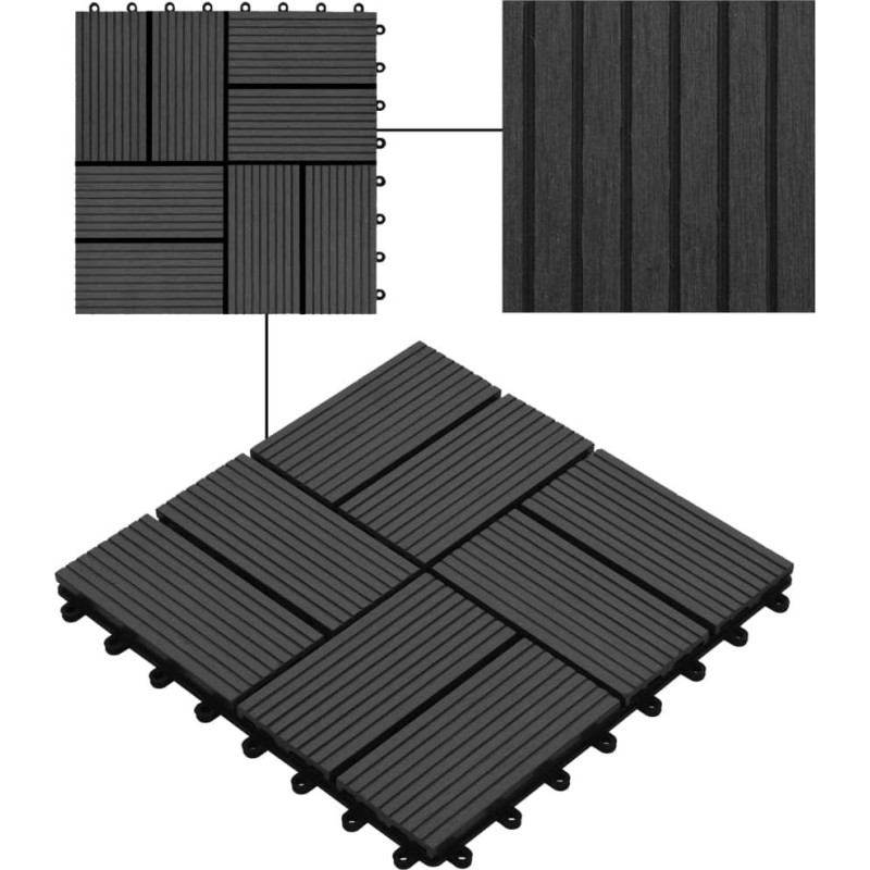 vidaXL Płytki tarasowe, 22 szt., 30 x 30 cm, 2 m, WPC, czarne