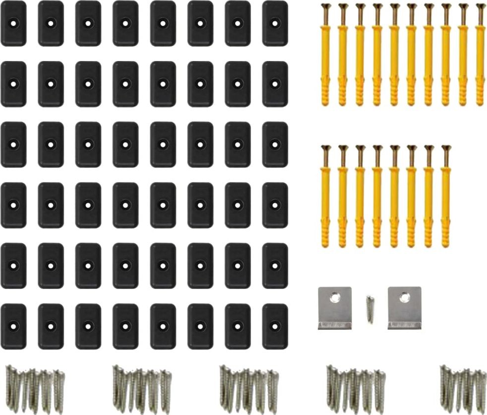 W przesyłce znajduje się 48 desek, 16 mocowań ze stali nierdzewnej do pierwszej i ostatniej deski, 384 plastikowe separatory, 384 śruby ze stali nierdzewnej, 144 plastikowe nasadki na śruby rozporowe, 144 śruby rozporowe ze stali nierdzewnej, 16 śrub (4 x 25 mm) oraz 24 legary.