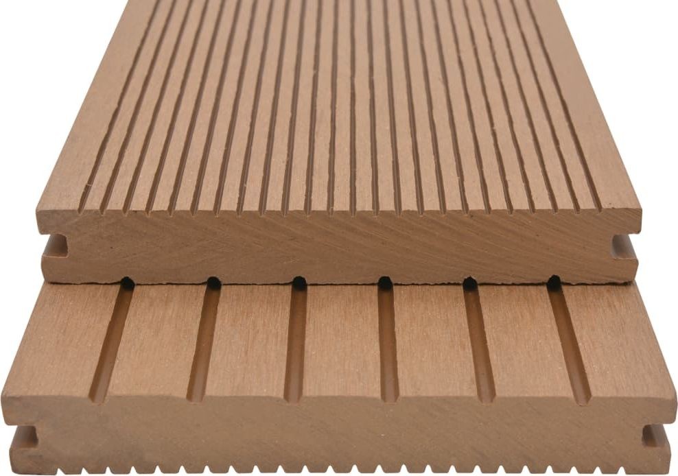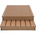 Wykonane z wysokiej jakości kompozytu drewna i plastiku (WPC) deski są odporne na wodę i bardzo trwałe. Mają 20 mm grubości, są zatem bardzo mocne. Dodatkowo każda z dwóch stron prezentuje inny wzór. Przesyłka obejmuje 30 desek tarasowych, 15 legarów, 240 plastikowych zacisków, 250 wkrętów ze stali nierdzewnej, 90 plastikowych kołków rozporowych oraz 10 zacisków początkowych ze stali nierdzewnej. Zestaw jest łatwy do zmontowania.