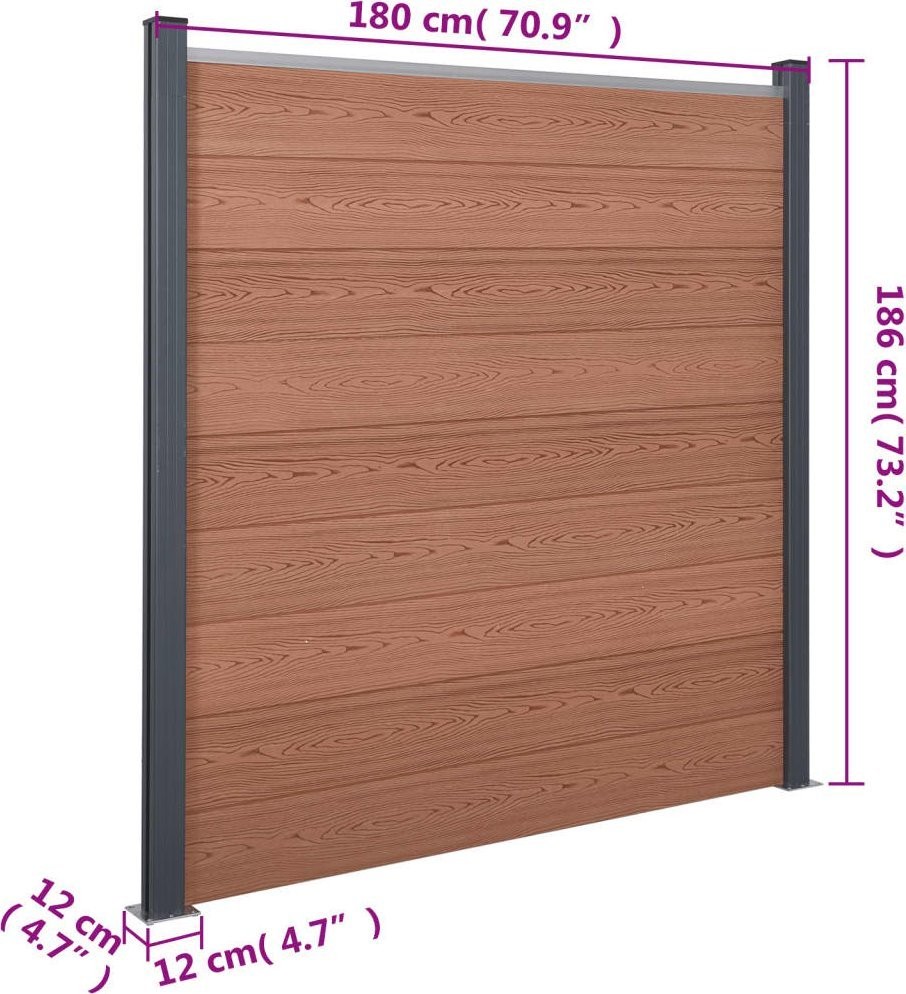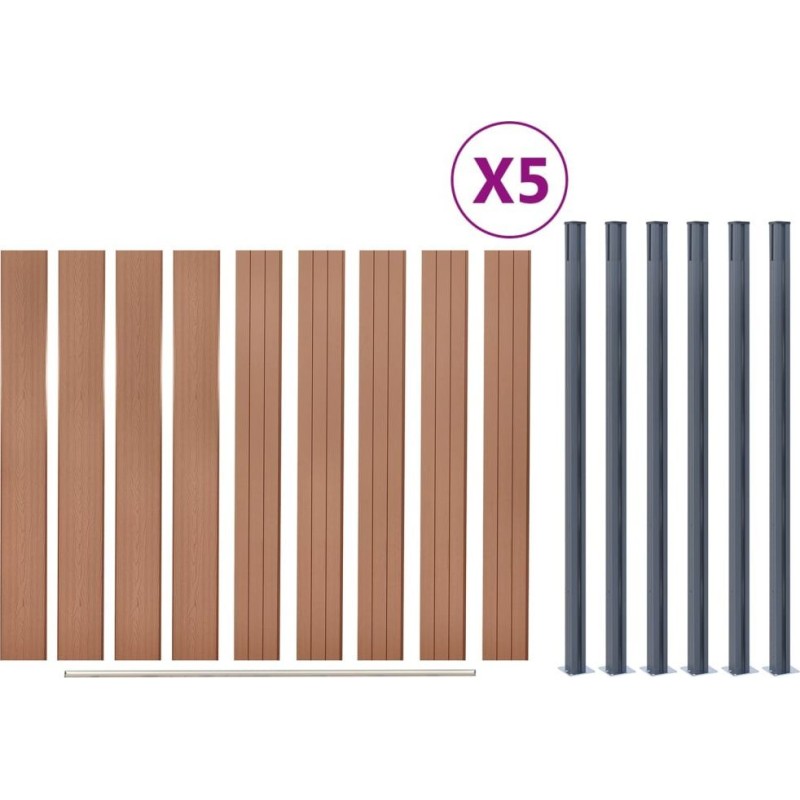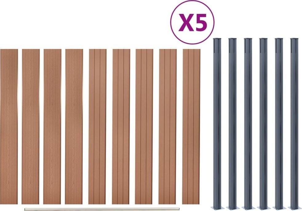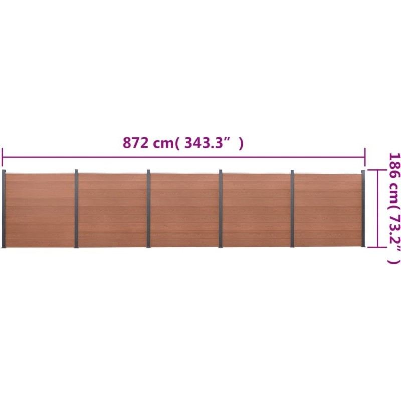 vidaXL Zestaw paneli ogrodzeniowych, brązowy, 872x186 cm, WPC