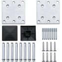 - Uniwersalny słupek: słupek posiada trzy szczeliny umożliwiające różne opcje montażu, a wielofunkcyjne stalowe nóżki można przykręcić do powierzchni lub zakotwiczyć w cementowej podstawie.
