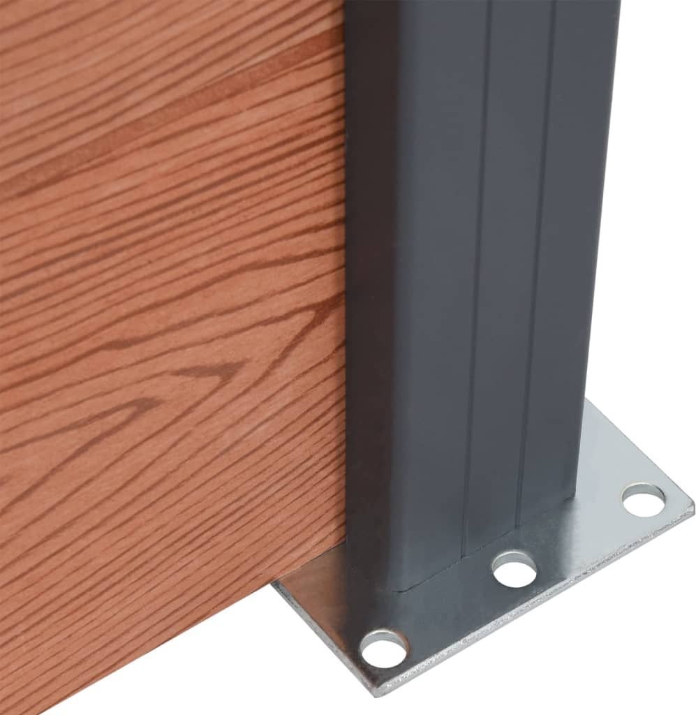 - Trwały materiał: wykonany z WPC (kompozytu drewna i tworzywa sztucznego) zestaw do zbudowania ogrodzenia jest trwały i odporny na niszczenie i rdzę.