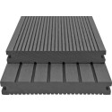 Wykonane z wysokiej jakości kompozytu drewna i plastiku (WPC) deski są odporne na wodę i bardzo trwałe. Mają 20 mm grubości, są zatem bardzo mocne. Dodatkowo każda z dwóch stron prezentuje inny wzór. Przesyłka obejmuje 30 desek tarasowych, 15 legarów, 240 plastikowych zacisków, 250 wkrętów ze stali nierdzewnej, 90 plastikowych kołków rozporowych oraz 10 zacisków początkowych ze stali nierdzewnej. Zestaw jest łatwy do zmontowania.