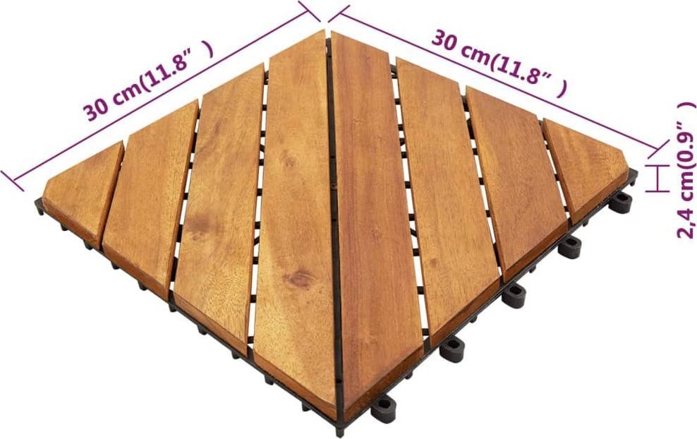 vidaXL Płytki tarasowe, 30 szt., brązowe, 30x30 cm, drewno akacjowe