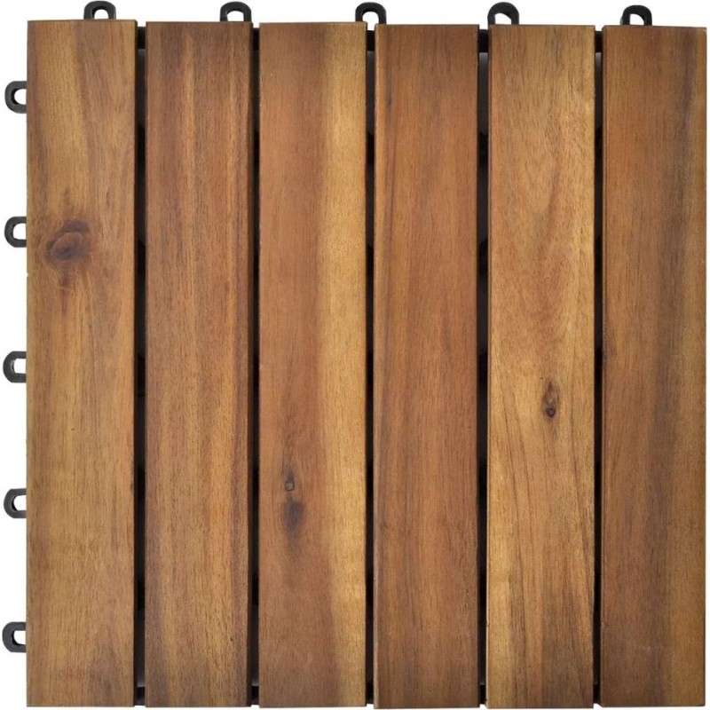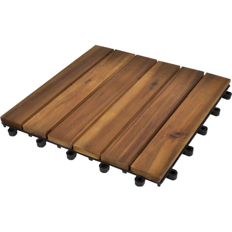 Płytki tarasowe wykonane są z wysokiej jakości drewna akacjowego, tropikalnego drewna liściastego, które jest odporne na warunki atmosferyczne i bardzo trwałe. Dzięki połączeniu wtykowemu płytki można łatwo i szczelnie łączyć, tworząc stabilną powierzchnię do chodzenia.