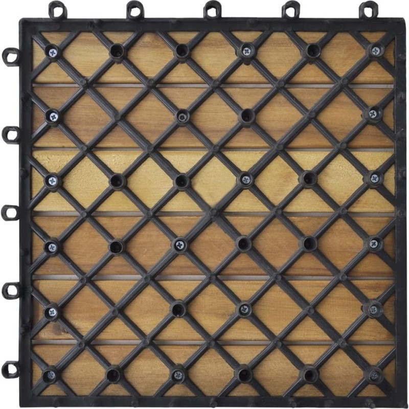 Ten zestaw 20 drewnianych płytek tarasowych jest idealny do ozdabiania powierzchni lub chodników w ogrodzie, na tarasie, balkonie lub w innym pomieszczeniu. Wzór jest nie tylko dekoracyjny, ale również ma właściwości antypoślizgowe.