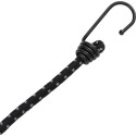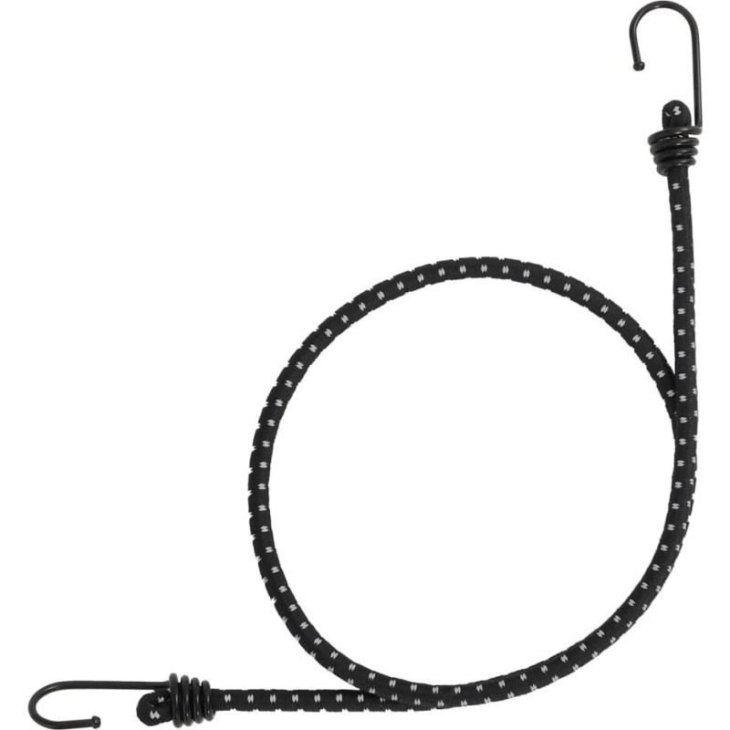 - Praktyczna forma: elastyczna linka z haczykami posiada pojedynczy pasek odblaskowy zapewniający widoczność i bezpieczeństwo nocą.