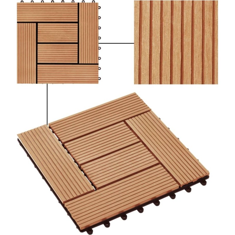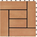 Zestaw składa się z 22 płytek z WPC, z których każda ma wymiary 30 x 30 cm, a razem pokrywają powierzchnię 2 m. Będzie to idealny wybór na patio, balkon, do łazienki i na otoczenie basenu lub spa.