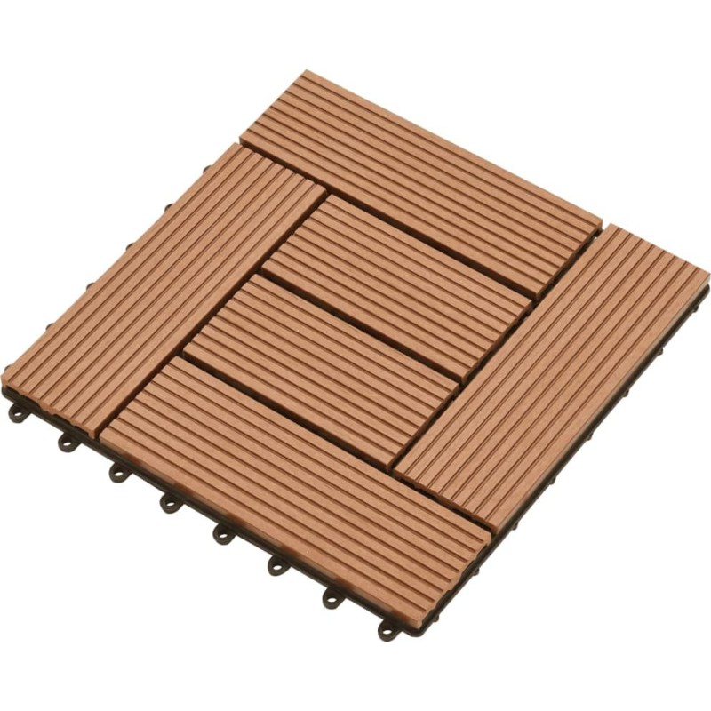 Zestaw 11 płytek w rozmiarze 30 x 30 cm pozwoli pokryć obrzar 1 m. Wykonanie z WPC sprawia, że są idealnym materiałem do wykorzystania na tarasie, balkonie, w ogrodzie i nad basenem. Wysokiej jakości płytki z systemem prostego montażu pozwolą ułożyć je bez użycia skomplikowanych narzędzi. Z całą pewnością sprawdzą się świetnie, będą też estetyczne i trwałe.
