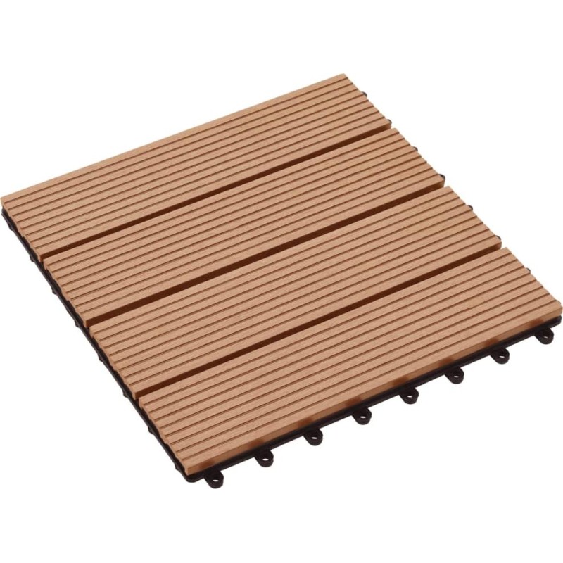 Zestaw składa się z 11 płytek z WPC, z których każda ma wymiary 30 x 30 cm, a razem pokrywają powierzchnię 1 metra kwadratowego. Będzie idealnym wyborem na patio, balkon, do łazienki, obszar wokół basenu i spa.
