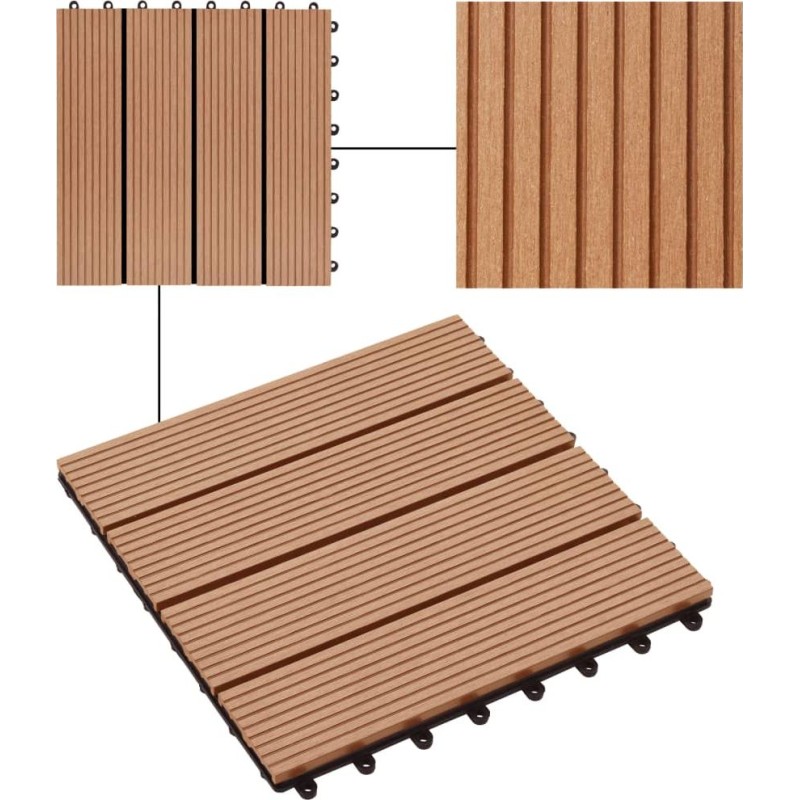 vidaXL Płytki tarasowe, 11 szt., WPC, 30 x 30 cm, 1 m, kolor tekowy