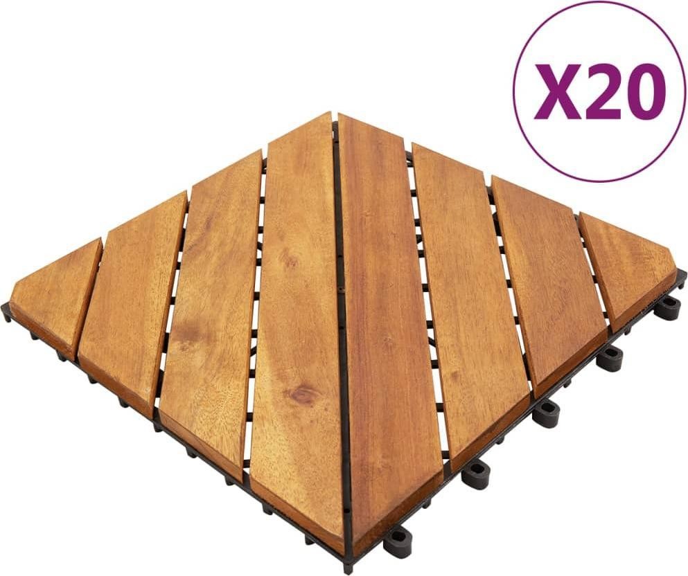 vidaXL Płytki tarasowe, 20 szt., brązowe, 30x30 cm, drewno akacjowe