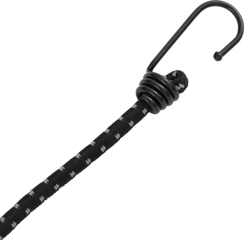 - Praktyczna forma: elastyczna linka z haczykami posiada pojedynczy pasek odblaskowy zapewniający widoczność i bezpieczeństwo nocą.